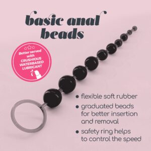 Surrender to the softness of this bead anal chain and fulfill your most secret fantasies with the help of this rare pearl.Main characteristics:· Flexible soft Rubber· First-time users friendly· Graduate beads for better insertion and removal· Safety ring helps to control the speed and provide safety· Use alone or with company· Phthalate-free· WaterproofBetter use with Crushious water-based anal lubricant.Clean up is a snap with warm water and neutral soap. Apply antibacterial toy cleaner for deep clean.Dimensions:25,4 cm in length | 0,8 to 2,5 cm in diameter.