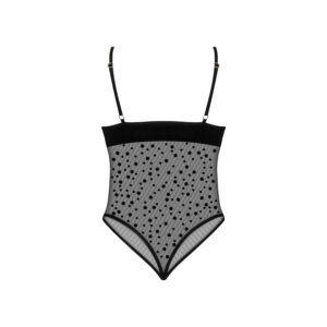 The Amalia Teddy is a seductive bodysuit that combines delicacy and sensuality. Made from transparent mesh adorned with playful dots, it perfectly highlights feminine curves. The model features sexy cutouts around the bust, adding spice and unique character to it.Product Features:Transparent mesh adorned with dots.Sexy cutouts around the bust.Adjustable straps for a perfect fit.Delicate bows adding charm.Packed in an elegant box with a photo of the product.Size: S/M and L/XL Size S/M: (Breasts: 81-91 cm, B-C, Waist: 56-71 cm, Hip: 85-97 cm) Size L/XL: (Breasts: 91-107 cm, C-D, Waist: 71-91 cm, Hip: 97-112 cm)Material: 88% polyester, 12% elastan