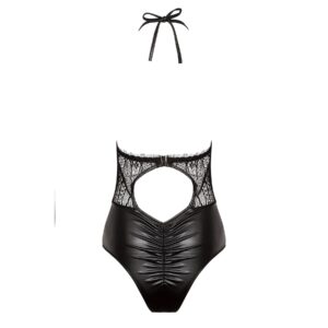 The Delilah teddy is an exquisite blend of elegance and seduction, made from the highest quality materials.Combined with elegant lingerie or worn alone, the Delilah teddy is sure to attract attention.Materials: eco-leather and quality lace.Design: daring cut-outs on the bust and back, with decoration on the bust. This piece ties at the neck with a sexy bow. The elasticity of the mesh allows it to fit your body perfectly. Color: classic black.Packaging: Presented in the elegant packaging with the product presentation photo, marked with the Beauty Night Fashion logo hologram.Includes: Bag for storage or washing included.Size: S/M and L/XLS/M: (Breasts: 81-91 cm, B-C, Waist: 56-71 cm, Hips: 85-97 cm)L/XL: (Breast: 91-107 cm, C-D, Waist: 71-91 cm, Hip: 97-112 cm)Material: 88% Polyester, 12% Elastane