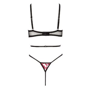 Perfect for romantic evenings, special occasions or as an exquisite piece of lingerie. Its unique design will make you feel confident and beautifulThe Evangelina teddy is a sensual and elegant garment that accentuates women’s curves and boosts self-esteem. Made from delicate mesh and adorned with delicate red embroidery, the Evangelina teddy is the perfect choice for any woman looking to feel incredible.Main features:Design: The front of the bodysuit features elaborate embroidery that subtly emphasises the bust and adds elegance to the look. The cups are underwired, providing extra support and comfort. The side and waist cut-outs accentuate the silhouette, while the delicate straps add a sophisticated touch. The front is also adorned with a bow embellished with crystals, giving it a unique charm. The back of the teddy seduces with its minimalist design, adjustable straps and a hook-and-eye fastening, ensuring a perfect fit.Colour: Black and red.Packaging: Presented in an elegant box with the product presentation photo, marked with the Beauty Night Fashion logo hologram.Sizes: S/M and L/XL.S/M: (Breasts: 81-91 cm, B-C, Waist: 56-71 cm, Hips: 85-97 cm).L/XL: (Breast: 91-107 cm, C-D, Waist: 71-91 cm, Hip: 97-112 cm).Material: 88% Polyester, 12% Elastane.
