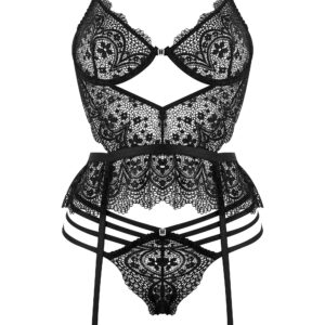 Introducing the Lace Temptation Set ? a unique lingerie set for women who want to feel dazzling and sensual. The intricately crafted lace and details make this set full of elegance and class, while captivating with its subtle sensuality.Main product features:Intricately adorned lace: The exquisite lace pattern adds a luxurious touch to the set, and the cut-outs beautifully highlight feminine curves.Sensual straps and cut-outs: Original design elements like straps and cut-outs create a unique look, adding a touch of boldness.Thong included: The set is completed with a thong that perfectly matches the look, creating a complete, seductive style.Perfect for gifting! The Lace Temptation Set is an excellent choice for a man looking to gift his partner with an elegant and sensual present. The set comes packaged in a stylish box, ready to be given for any special occasion.Size: S/M, L/XL and 2XL/3XLSize S/M: (Breasts: 81-91 cm, B-C, Waist: 56-71 cm, Hip: 85-97 cm)Size L/XL: (Breasts: 91-107 cm, C-D, Waist: 71-91 cm, Hip: 97-112 cm)Size 2XL/3XL: (Breasts: 107-120 cm, D-E, Waist: 91-104 cm, Hip: 110-126 cm)Material: 85% Polyamide, 10% Elastane, 5% Polyester