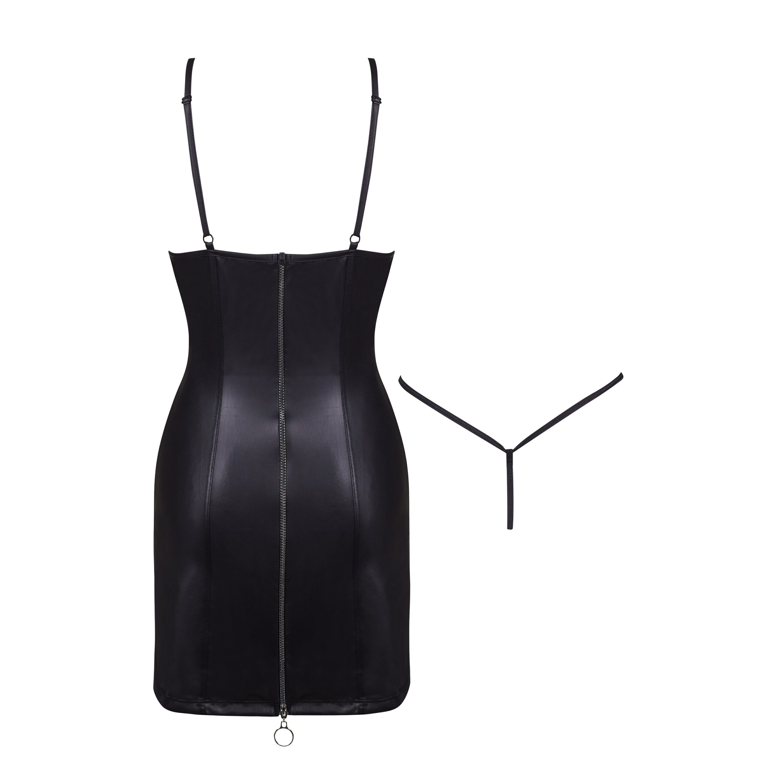Sensual and sophisticated, the Lexi dress is the perfect choice for bold women who want to stand out and feel special, as well as for men looking for the ideal gift for their partner. This dress combines modern design with luxurious materials, making it perfect for evening outings and special occasions.Main features:Unique design: The dress is made of eco-leather and transparent, fine mesh, adding incredible charm and highlighting feminine curves. Perfect for attracting attention and making a lasting impression.Seductive neckline: The transparent mesh neckline with vertical inserts gives the dress a modern and alluring look, making every woman feel confident and attractive.High-quality materials: The eco-leather is soft and elastic, ensuring wearing comfort and a perfect fit, as well as durability and elegance.Elegant back: The dress features a zipper at the back, making it easy to put on and adding a stylish touch. Ideal for romantic evenings and special occasions.Complete set: The set includes matching thong panties that perfectly complement the outfit, making it a complete and thoughtful gift.Elegant packaging: The Lexi dress comes in elegant packaging with a product photo, making it an ideal gift for a loved one. The elegant packaging emphasizes the luxurious nature of the dress.Don’t miss the chance to enrich your wardrobe with a dress that combines modern style with elegance, or give your partner a truly special gift. Choose the Lexi dress and feel like a true star at any event!Size: S/M and L/XL Size S/M: (Breasts: 81-91 cm, B-C, Waist: 56-71 cm, Hip: 85-97 cm) Size L/XL: (Breasts: 91-107 cm, C-D, Waist: 71-91 cm, Hip: 97-112 cm)Material: 92% Poliamid 8% Elastan