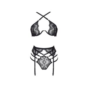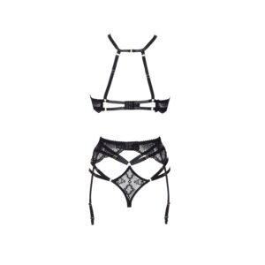 Delight in the elegance and allure of the Natasha set, whether for a special occasion or a romantic evening.The Natasha set is a stunning set designed to arouse passion and confidence. Created with exquisite lace and delicate details, this set is perfect for those special moments.Main features:Exquisite lace design: Delicate lace that emphasises your natural beauty.Adjustable straps: Ensure a perfect fit and maximum comfort.Garter belt: Adds an extra touch of allure and can be combined with your favourite stockings.Matching thong: Completes the look, providing a perfect, seductive appearance.Packaging: Presented in elegant packaging with a photo of the product, marked with a hologram of the Beauty Night Fashion logo.Extra: A practical storage and laundry case is also included to keep your lingerie in perfect condition.Sizes: S/M and L/XLSize S/M: (Breasts: 81-91 cm, B-C, Waist: 56-71 cm, Hips: 85-97 cm)Size L/XL: (Breasts: 91-107 cm, C-D, Waist: 71-91 cm, Hip: 97-112 cm)Material: 88% polyester, 12% elastane.