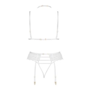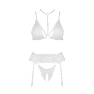 Discover the exceptional lingerie set Noemi set white, consisting of a bra, thong, and garter belt, which will undoubtedly enchant both you and your partner. This sensual set, made of delicate lace fabric in an elegant white color, accentuates your natural beauty and makes you feel incredibly feminine and sexy.Noemi set white is the essence of elegance and sophistication. The exquisite lace, intricately adorning the bra and thong, perfectly complements the transparent, lightweight materials that gently envelop the body. This set not only fits the silhouette perfectly but also highlights its assets in the most refined way. Adjustable straps and fastenings allow for an ideal fit, ensuring comfort throughout the day and night.Main features:High-quality lace: Exquisite and delicate, adding a luxurious look to the set.Elegant white color: Perfectly accentuating natural beauty.Transparent materials: Lightly enveloping the body, providing comfort and sensuality.Adjustable straps and fastenings: Allowing for an ideal fit to the silhouette.Intricately adorned bra and thong: Highlighting the silhouette’s assets in an elegant way.Wearing comfort: Designed to be worn all day and night, thanks to the perfect fit.Elegance and sophistication: A set that adds confidence and makes every moment special.Ideal gift: The entire set is packaged in an elegant box with product photos, making it perfect for a gift.If you are looking for the perfect gift for your partner, the Noemi set white is a sure hit. The delicate color and subtle finishes make this lingerie not only elegant but also incredibly sensual. This set is an excellent way to express your feelings and appreciate the beauty of your loved one. With it, every woman will feel special and appreciated.Size: S/M and L/XL Size S/M: (Breasts: 81-91 cm, B-C, Waist: 56-71 cm, Hip: 85-97 cm) Size L/XL: (Breasts: 91-107 cm, C-D, Waist: 71-91 cm, Hip: 97-112 cm)Material: 90% polyamide, 10% elastan