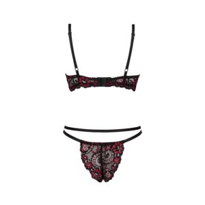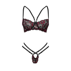 Dive into sensuality with the Rosalinda set, which combines the elegance of black lace with a touch of fiery red. Perfect for romantic evenings, it emphasises feminine curves, adding confidence.Perfect for romantic evenings, it emphasises feminine curves, adding confidence.Main features:Design: Rosalinda is a lingerie set made of black lace with sparkling red flowers. The bra has adjustable straps that beautifully accentuate the neckline. The knickers with adjustable straps perfectly complement the bra, creating a sensual duo. This set emphasises feminine curves, boosting confidence.Details: black lace with red flowersStraps: adjustable on the bra and thong.Packaging: Luxurious box with a photo of the product, ideal for a giftSizes: S/M and L/XL. S/M: (Breasts: 81-91 cm, B-C, Waist: 56-71 cm, Hips: 85-97 cm). L/XL: (Breasts: 91-107 cm, C-D, Waist: 71-91 cm, Hip: 97-112 cm).Material: 90% polyamide, 10% elastane.