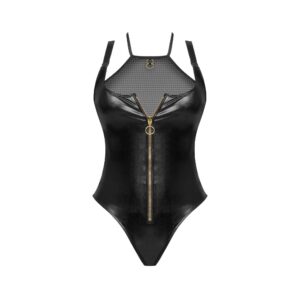 The ‘Roxana’ bodysuit combines tulle and latex-like material to provide a sensual look and perfect fit. Thanks to the hook-and-eye closure at the crotch, the bodysuit can also be worn as a top for party outfits. Gold accents in the form of a zipper and neck rings add elegance and luxury. An ideal choice for evening outings and romantic encounters.The set comes in an elegant package with a photo depicting the product.Size: S/M and L/XL Size S/M: (Breasts: 81-91 cm, B-C, Waist: 56-71 cm, Hip: 85-97 cm) Size L/XL: (Breasts: 91-107 cm, C-D, Waist: 71-91 cm, Hip: 97-112 cm)Material: 88% polyester, 12% elastan
