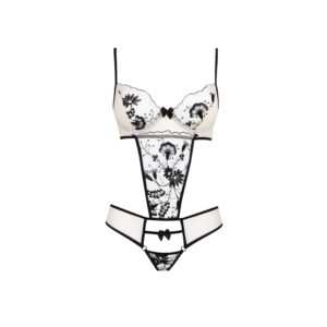 Introducing the Savannah teddy – an incredibly sensual choice for women who value elegance and sophisticated style. Made from the highest quality materials, it combines delicate beige with contrasting black accents, giving it a unique character. Embroidered floral patterns add a romantic charm, accentuating feminine curves.Main Features:Material: high-quality delicate beige fabric with black detailsPattern: embroidered floral designsConstruction: cut-outs exposing the waist and backFit: adjustable straps for a perfect fitGift: elegant box with product photoExtras: storage or laundry pouch includedThe Savannah teddy is a perfect choice for special occasions or as a gift for a loved one. Packaged in an elegant box with a product photo, marked with a hologram bearing the Beauty Night Fashion logo, it guarantees the highest quality and satisfaction with your purchase. Delight yourself and your partner with an extraordinary look that will be remembered for a long time.Size: S/M and L/XLSize S/M: (Breasts: 81-91 cm, B-C, Waist: 56-71 cm, Hip: 85-97 cm) Size L/XL: (Breasts: 91-107 cm, C-D, Waist: 71-91 cm, Hip: 97-112 cm)Material: 92% Poliamid, 8% Elastan