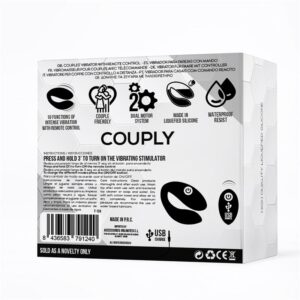 Couply has a dual system, that is, it has two powerful motors embedded with which you can enjoy 10 intense, wonderful, pleasant vibration functions. So you don´t have to worry, Couply includes a wireless remote control, you can change the intensity whenever and wherever you want, or give the remote control to your partner to let yourself go.
