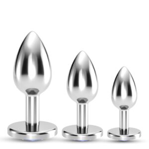 Indulge yourself in the most luxurious way! Crushious presents the most coveted and elegant anal jewellery collection. Bijou brings you sophisticated anal plugs, presented in a set of 3 different sizes to gradually increase your resistance.Bijou can be used as an adornment in a strip tease session and as extra stimulation during vaginal penetration.The metal is perfect for temperature play, submerge your plug in hot or cold water for new and exciting experiences!Use with lubricant for better insertion. Choose Crushious Waterbased or Anal lubes for even better results.Wash with warm water and mild soap after use, you can also use a toy-specific antibacterial detergent.Perfect to train your anal resistance.Dimensions:S – Insertable Length: 6cm;Diameter: 2,7cm.M – Insertable Length: 7cm;Diameter: 3,3cm.L – Insertable Length: 8cm;Diameter: 4,1cm.