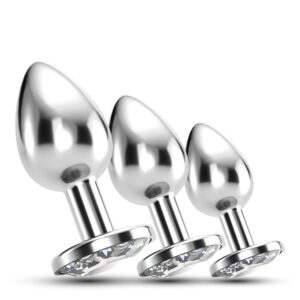 Indulge yourself in the most luxurious way! Crushious presents the most coveted and elegant anal jewellery collection. Bijou brings you sophisticated anal plugs, presented in a set of 3 different sizes to gradually increase your resistance.Bijou can be used as an adornment in a strip tease session and as extra stimulation during vaginal penetration.The metal is perfect for temperature play, submerge your plug in hot or cold water for new and exciting experiences!Use with lubricant for better insertion. Choose Crushious Waterbased or Anal lubes for even better results.Wash with warm water and mild soap after use, you can also use a toy-specific antibacterial detergent.Perfect to train your anal resistance.Dimensions:S – Insertable Length: 6cm;Diameter: 2,7cm.M – Insertable Length: 7cm;Diameter: 3,3cm.L – Insertable Length: 8cm;Diameter: 4,1cm.