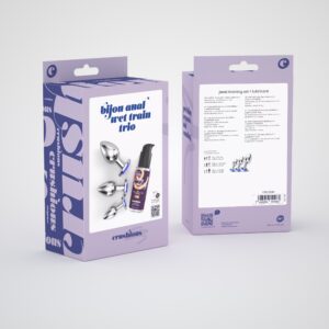 Indulge yourself in the most luxurious way! Crushious presents the most coveted and elegant anal jewellery collection. Bijou brings you sophisticated anal plugs, presented in a set of 3 different sizes to gradually increase their resistance.Bijou can be used as an adornment in a strip tease session and as extra stimulation during vaginal penetration.The metal is perfect for temperature play, submerge your plug in hot or cold water for new and exciting experiences!Use with lubricant for better insertion. Crushious lubes in Waterbased or Anal versions for even better results.The included 50 ml lubricant will help relax the muscles without numbing effect. The practical, lightweight and discreet packaging makes it perfect for carrying. Made in the E.U. and not tested on animals.Wash with warm water and mild soap after use, you can also use a toy-specific antibacterial detergent.Perfect for training anal endurance.Dimensions:S – Insertable Length: 6cm;Diameter: 2,7cm.M – Insertable length: 7cm;Diameter: 3,3cm.L – Insertable length: 8cm;Diameter: 4,1cm.