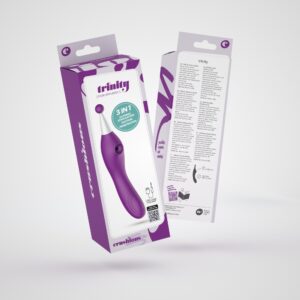 Ever wished for a magical wand to guide you into amazing pleasure state? Trinity is that wish in toy form.Trinity gathers the best of the best, and you may experience from 3 suction modes that provide intense clitoral tease with no direct contact; and 10 vibrating speeds on the perfectly round tip for those moments when your clitoris just begs for that extra stimulation; on the opposite tip you find a girthy shaft with 10 vibrating speeds and the perfect shape to pamper even the shyiest G-Spot.Why take a shower alone? Trinity is waterproof, use it underwater to increase the suction modes. And by being rechargeable via USB cable, assures powerful and steady modes from start till finish.Please completely charge Trinity before use. The light flickers when you connect the charger to signal that the battery is charging. When charge is complete, the light is steady. Full charge for 90 minutes.Use your wand for 45 minutes on higher speed and 60 minutes on lower speed.Clean up is a snap, wash with warm water and neutral soap or use a toy cleaning spray. Tap it dry and store away from light and heat sources.The use of lubricant is advised. Always use waterbased lubricants, oils and other type of lubricants will damage the integrity of the material.Crushious lubricants are the best addition to your Crushious toys.Dimensions:18,3 cm in lenght; 3 cm in diameterMaterial:Silicone, ABS