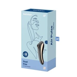 Satisfyer Dual Kiss can be useful in many ways: The pressure wave vibrator made of body-friendly silicone can also be used as a G-spot vibrator and satisfy all your desires. Let its circular head pamper you with sensual and vibrating pressure waves or enjoy a G-spot massage thanks to its slightly curved vibrating handle.