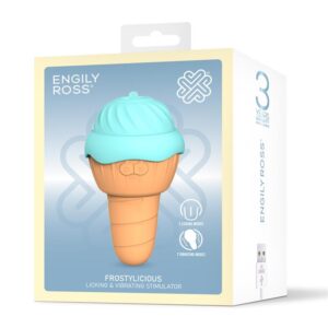 At the top of Frostylicious, in the center of the ice cream ball, you will find a stimulating tongue with 7 licking functions. This function is perfect for stimulation of the clitoris, nipples, or any area you want.