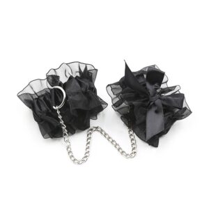 Lacy caresses from this beautiful bondage set will indulge you and your partner into some romantic kinky play. Main characteristics:· 3-piece bondage lacy set· Suitable for beginner and advanced users· Reusable nipple covers· Adjustable lace blindfold· Elastic cuffs· Material: Metal, Polyester
