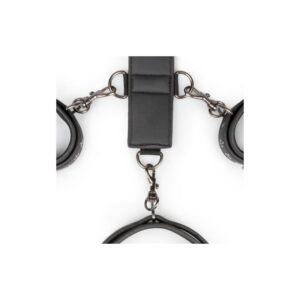 Show whos the boss with this exciting set of ligatures. It features a rope harness, handcuffs, and collar. Both the collar and cuffs are adjustable and features a design for a perfect fit. Made of faux leather, they have foam inside to ensure comfort. The rope harness features a small D ring and a large D ring, ideal for attaching and removing clips when desired. Remember that you can exchange this set with your favorite toys.