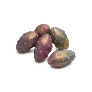 This thick, textured shaft from Creature Cocks is one of the most colorful to date, featuring a mix of rich, vibrant, iridescent colors in shades of pink, green, orange, and purple. The shaft itself is large and thick with small bumps on the head, ribbed texture along the opposite side, and a blend of textures along the shaft up to the wide, suction cup base. It can be used hands-free using the suction cup or in conjunction with a compatible harness for strap-on play or pegging! Place one or all four larval eggs (each measuring 50.8 mm x 27.94 mm) into the hollow sheath and then insert them into your opening.