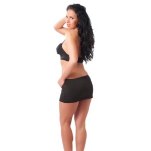 If you want to go sexy but elegant you need this set. You have included a top with an opening on the bottom with a round ornament in the center of the chest and a mini skirt with a strip on the top with the same adornment. You will love how it fits.