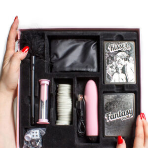 Each player takes a black card “Fantasy cards” and writes on it the fantasy he/she would like to carry out. Then, you must hide it in any of the nine thematic rooms on the board, among the rest of the cards, without being seeing by the other member of the couple. It may be a fantasy that takes place when the game ends or one that is carried out another day.