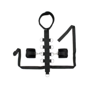 A set for a night of passion and debauchery. It has a comfortable and adjustable collar. The necklace has a front and a back strap full of hooks so you can adjust the handcuffs to a level of comfort and pleasure. Apart from this, an extra strip crosses your waist so that the tapes do not move from their place.