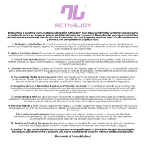 ActiveJoy®, the app where pleasure is a shared experience, but your privacy is always protected. Download the app now and discover a new dimension of intimate connection and personal satisfaction.