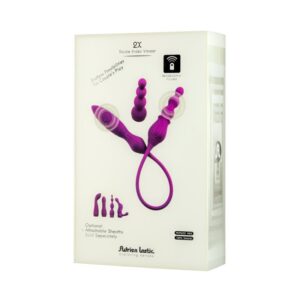 Double vibrator with independent motors joined by an extra flexible and resistant silicone cord for all types of positions. It is ideal for playing alone or as a couple thanks to its 10 vibration functions that you can control with your high-distance remote control. You can enjoy a range of interchangeable covers to vary the pleasure, in point G or in point P.