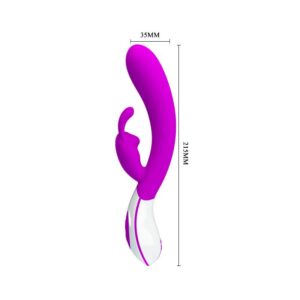 This 12-function vibe is designed with a curved shape ideal for G-spot stimulation while the hard but soft silicone stimulates the clitoris.